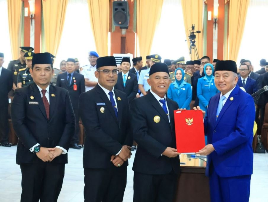 Suarawan, Kotabaru – H.Muhammad Rusli dan Syairi Mukhlis Terima Surat Keputusan (SK) Mentri Dalam Megeri (Mendagri) tentang Pengesahan Pengangkatan sebagai Bupati dan Wakil Bupati Kotabaru yang diserahkan langsung Oleh Gubernur Kalimantan Selatan (Kalsel) H Muhidin, Rabu (5/3/2025) bertempat di Gedung Mahligai Banjarmasin.