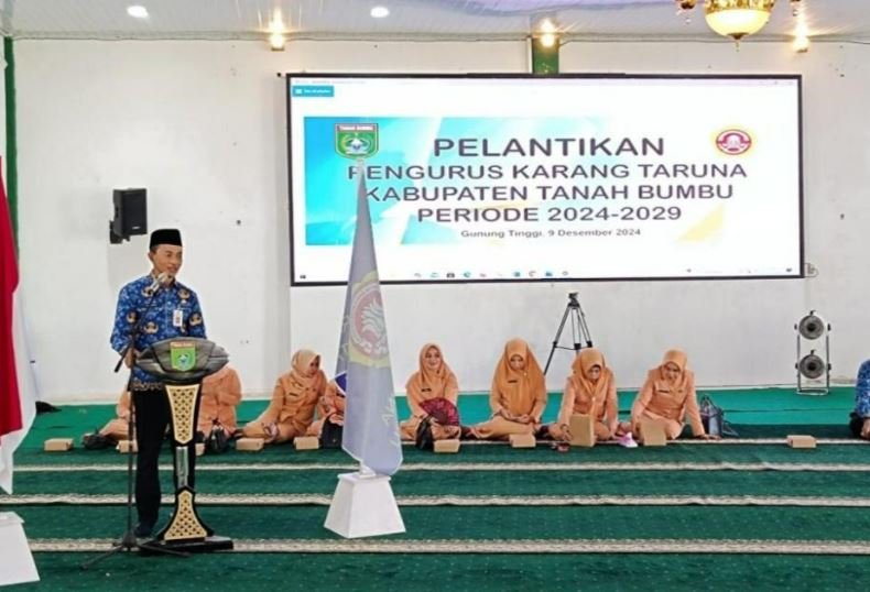 Tanah Bumbu – Sekretaris Daerah, Ambo Sakka, melantik Pengurus Karang Taruna Kabupaten Tanah Bumbu Tahun 2024-2029 di Pendopo Serambi Madinah, Senin (9/12/2024).