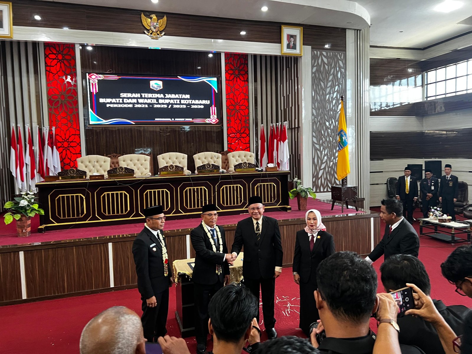 Suarawan, Kotabaru – Serah Terima Jabatan (Sertijab) Bupati dan Wakil Bupati Kotabaru Terpilih periode 2025 – 2030 dilaksanakan di Gedung DPRD Kotabaru Lt.III, Senin(03/03/25). Jabatan yang Sebelumnya dipegang oleh Bupati dan Wakil Bupati Priode 2021-2025, H.Sayed Alaydrus, S.H dan Andi Rudi Latief, S.H, Kini Resmi Beralih kepada Bupati dan wakil Bupati periode 2025-2030, H.Muhammad Rusli, S.sos dan Syairi Mukhlis, S.sos.