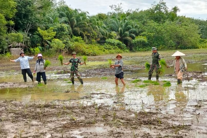Suarawan, Kotabaru – Satuan Tugas (Satgas) Tentara Manunggal Membangun Desa (TMMD) ke-123 Kodim 1004/Kotabaru bekerja sama dengan warga Desa Talusi, Kabupaten Kotabaru, Kalimantan Selatan, dalam kegiatan penanaman padi yang bertujuan memperkuat ketahanan pangan daerah. (12/03/2025)