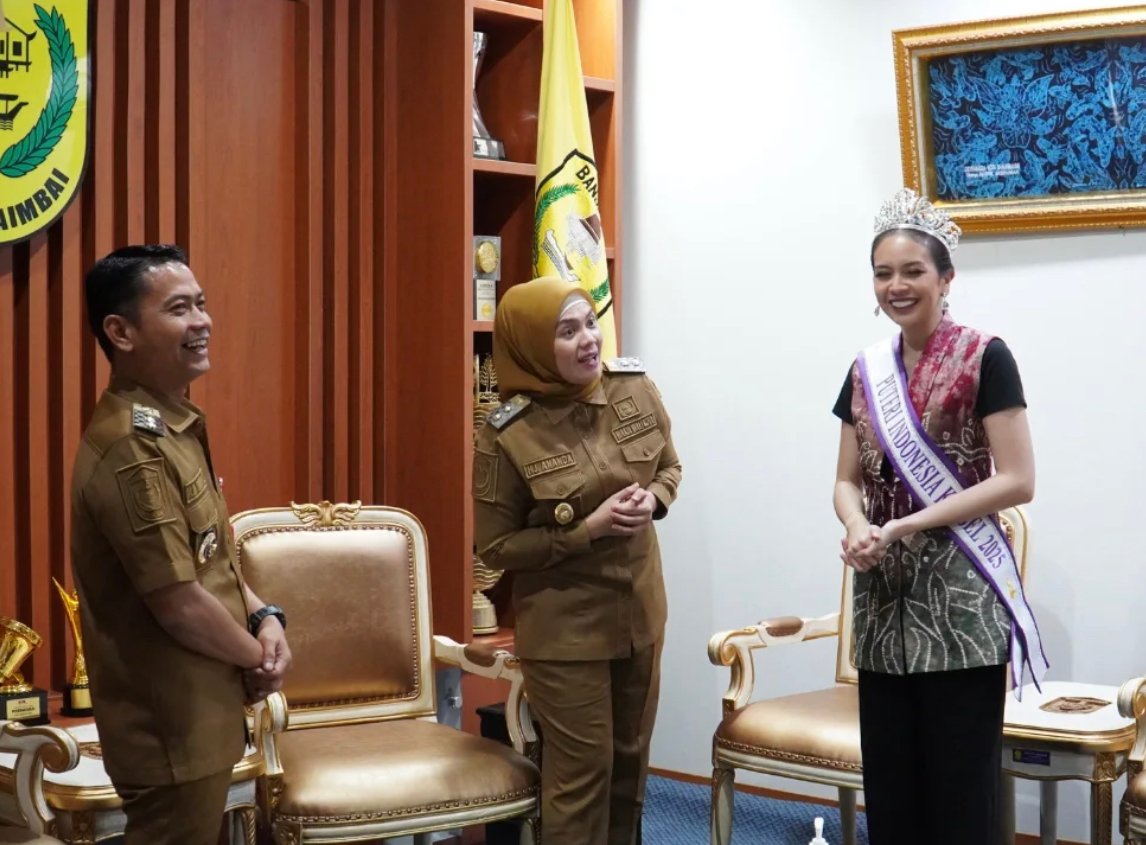 Suarawan, Banjarmasin – Wali Kota Banjarmasin, H.M. Yamin HR, bersama Wakil Wali Kota Banjarmasin, Hj. Ananda, menerima audiensi dari Alma Santang, Putri Indonesia Perwakilan Kalimantan Selatan 2025, di Ruang Kerja Walikota Banjarmasin, Balai Kota Banjarmasin, pada Selasa (04/03).
