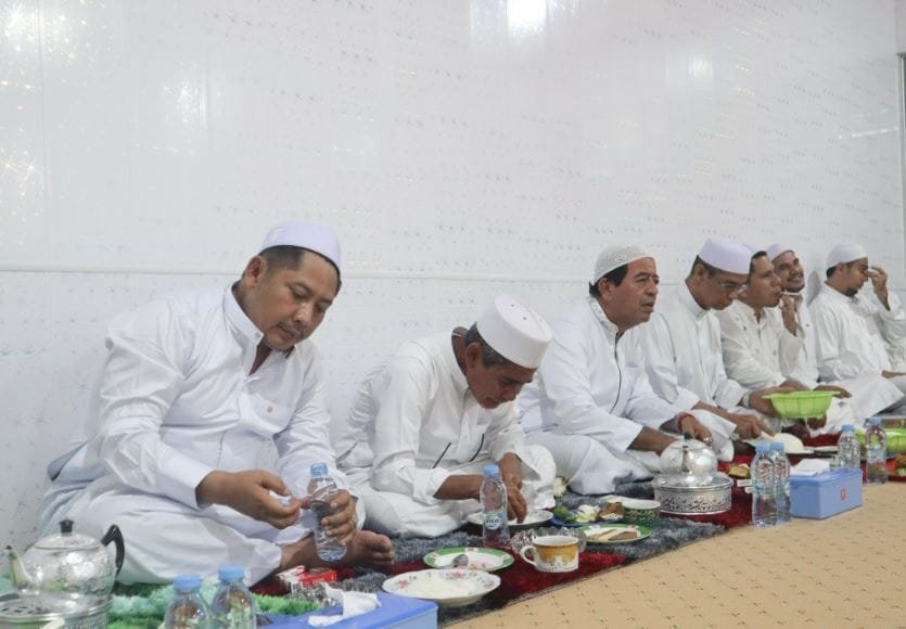Tak segan Ustaz Rosyadi menyantap hidangan yang tersedia di warung amal tersebut. Dirinya sesekali menyerap aspirasi warga setempat.