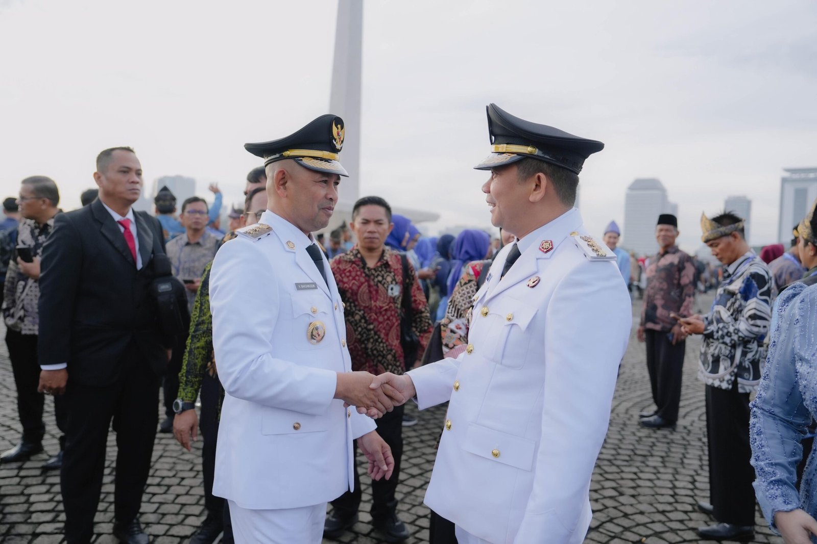 Suarawan, Tanah Bumbu – Anggota DPRD Kabupaten Tanah Bumbu, Andi Rustianto, mengucapkan selamat kepada Andi Rudi Latif dan H. Bahsanudin setelah resmi dilantik sebagai Bupati dan Wakil Bupati Tanah Bumbu oleh Presiden Republik Indonesia, Prabowo Subianto, di Istana Merdeka.(20/2/2025).