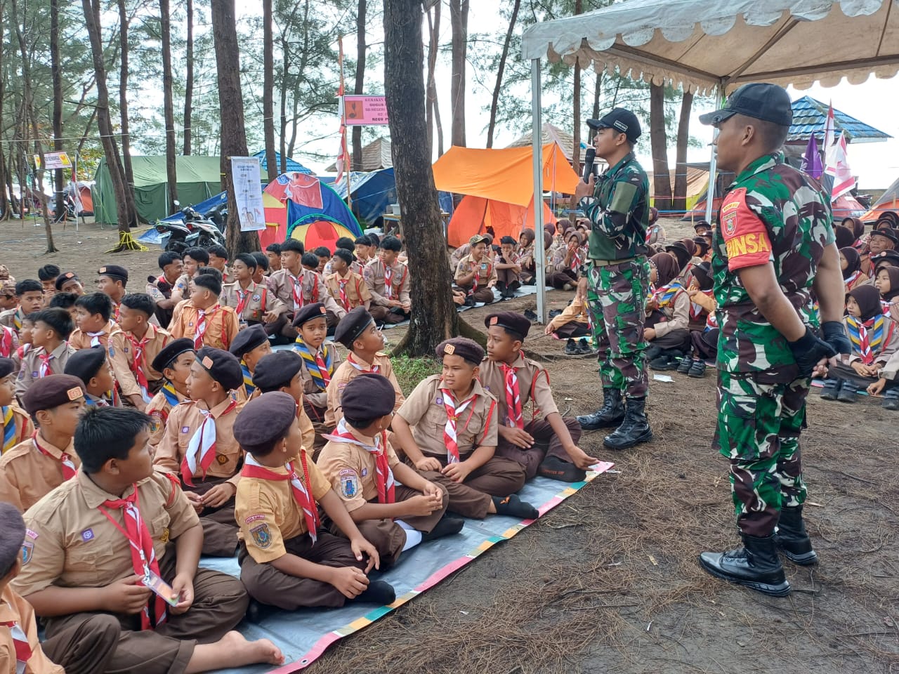 Suarawan, Tanah Bumbu – Babinsa Koramil 1022-02/Kusan Hilir aktif memantau kegiatan perkemahan Jambore Pramuka yang digelar di Pantai Rindu Alam, Desa Betung, Kecamatan Kusan Hilir, pada Minggu (9/2/2025).
