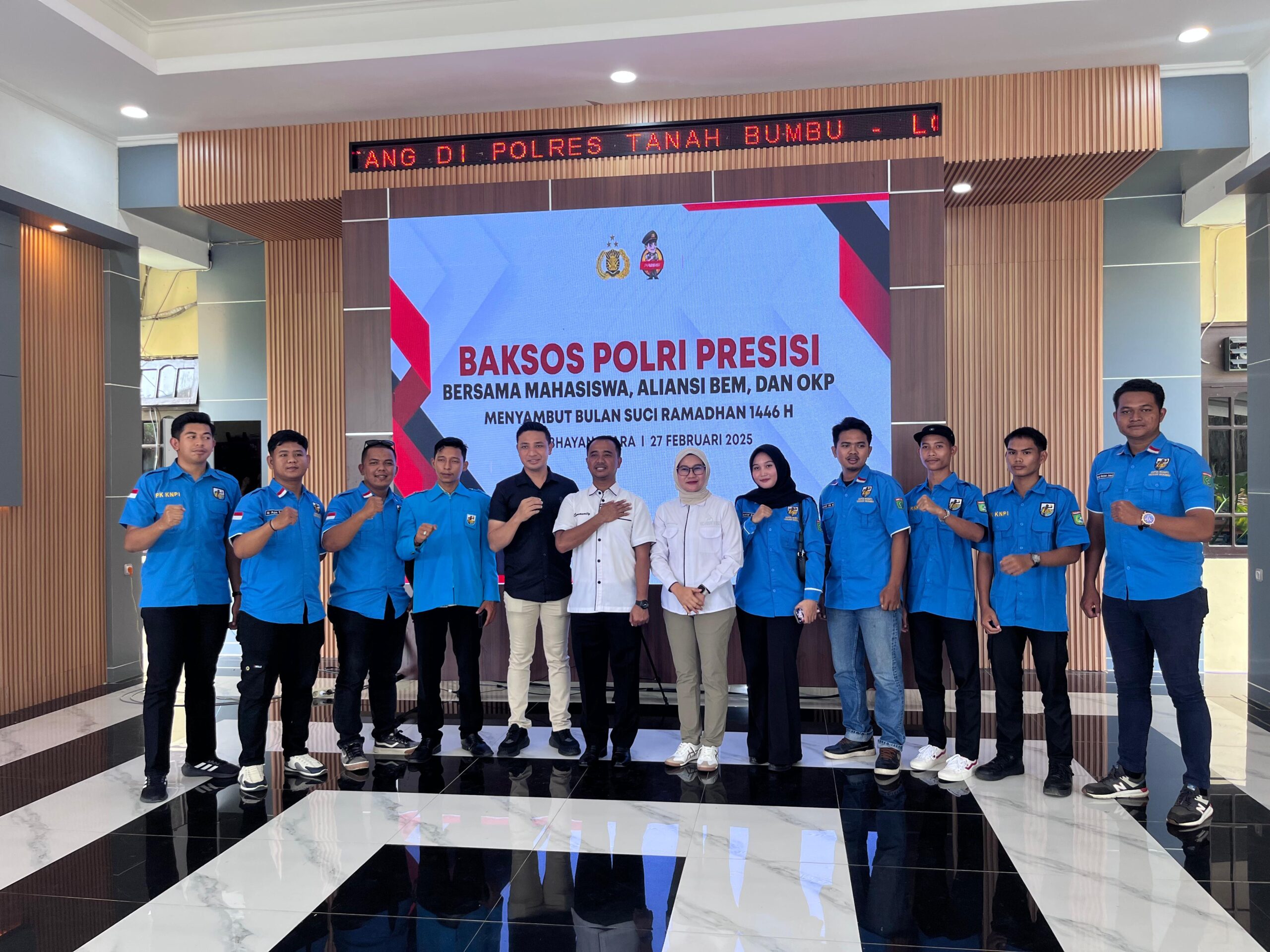 Menyambut bulan suci Ramadhan 1446 H, Polri Presisi bersama mahasiswa yang tergabung dalam Aliansi BEM dan OKP Kabupaten Tanah Bumbu  menggelar kegiatan bakti sosial (baksos) di Pendopo Gajah Mada Polres Tanah Bumbu 27 Februari 2025