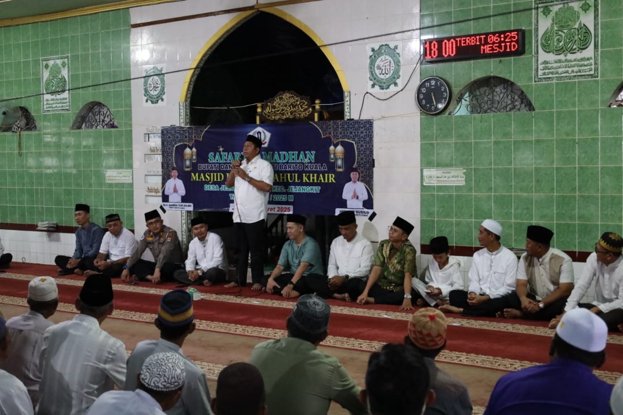Dalam sambutannya, Bupati Bahrul Ilmi menyampaikan rasa bangga dan bahagia dapat bersilaturahmi dengan masyarakat Jejangkit di bulan suci Ramadhan. Ia menekankan pentingnya nilai-nilai keimanan, kejujuran, dan kepedulian sosial selama bulan penuh berkah ini.