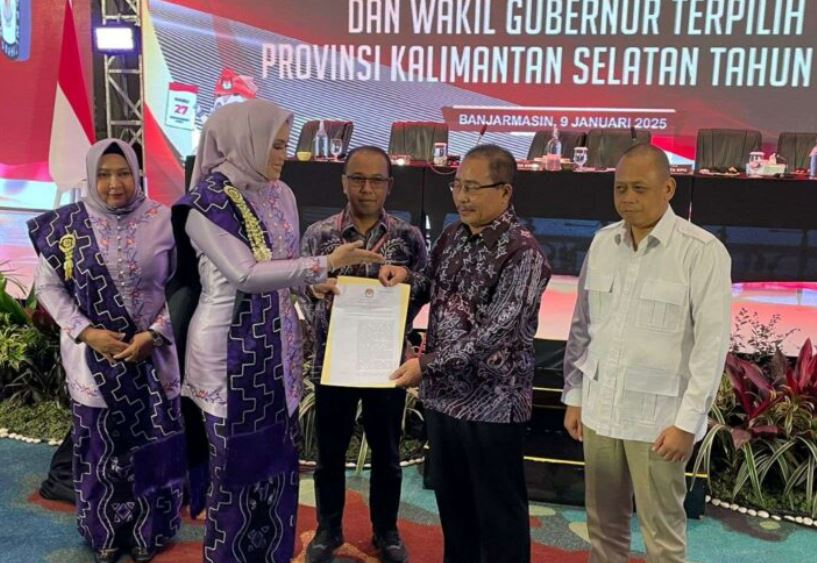 Banjarmasin – Haji Muhidin dan Haji Hasnuryadi Sulaiman resmi ditetapkan sebagai Gubernur dan Wakil Gubernur Kalimantan Selatan (Kalsel) terpilih untuk periode 2025-2030. Penetapan ini dilakukan melalui Sidang Pleno Terbuka yang digelar oleh Komisi Pemilihan Umum (KPU) Kalsel pada Kamis (9/1/2025) malam di Fugo Hotel, Banjarmasin.