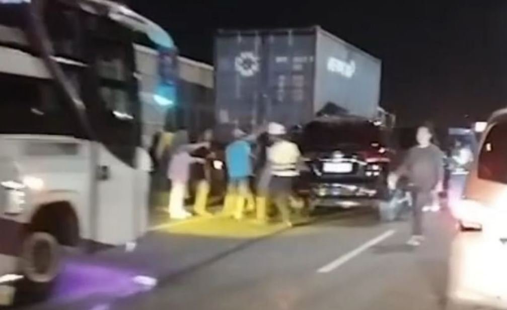 “Jadi naik tol ke arah selatan ke utara. Jadi di depannya itu ada kontainer Sementara jalan sebelah kiri. Kemungkinan Land Cruiser ini mendahului ke arah kanan, tapi menabrak belakang sudut kiri kontainer. Sehingga terjadi tabrakan,” jelasnya.