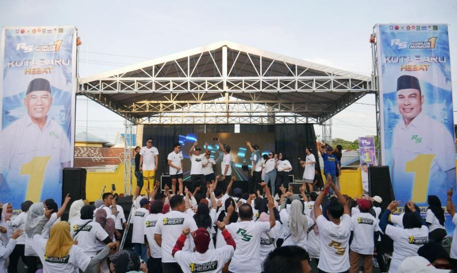 KOTABARU – Ratusan warga Pulau Laut Sigam Kotabaru antusias mengikuti senam zumba bersama calon Bupati dan Wakil Bupati Kotabaru H Rusli-Syairi, Minggu (29/9) sore.