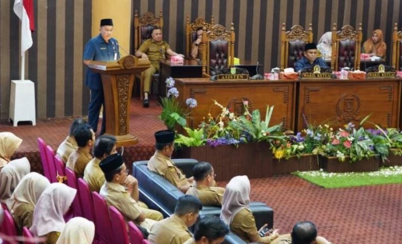 Tanah Bumbu – Bupati Kabupaten Tanah Bumbu, Zairullah Azhar, melalui Asisten II Bidang Perekonomian dan Pembangunan, Eriyanto Rais, memberikan tanggapan eksekutif terhadap Pemandangan Umum Fraksi-Fraksi Dewan Perwakilan Rakyat Daerah (DPRD) Tanah Bumbu terkait Rancangan Peraturan Daerah (Raperda). Penyampaian tersebut berlangsung di Gedung Rapat Paripurna DPRD Tanah Bumbu, Selasa (15/10/2024).