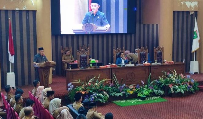 Selanjutnya, dalam kesempatan itu, Ketua DPRD mempersilahkan Bupati Tanah Bumbu yang diwakili Sekda, H Ambo Sakka untuk menyampaikan secara resmi Ranperda yang akan diserahkan.