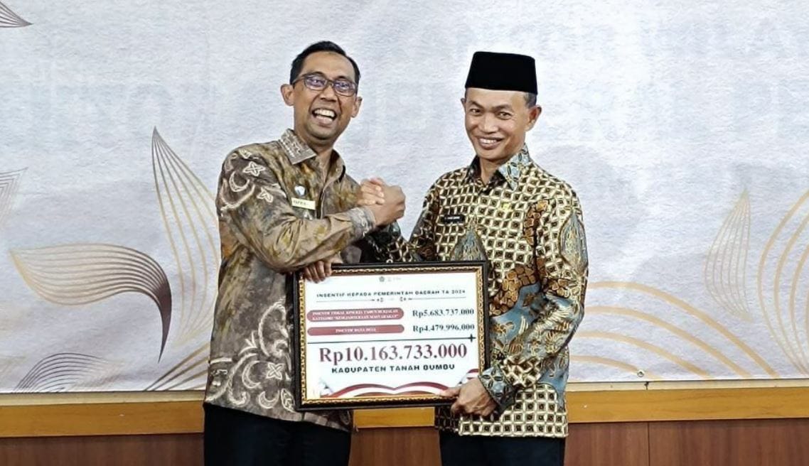 Tanah Bumbu – Pemerintah Kabupaten Tanah Bumbu (Pemkab Tanbu) berhasil menerima insentif fiskal kinerja tahun berjalan kategori kesejahteraan masyarakat dan dana desa senilai Rp10.163.733.000 dari pemerintah pusat.