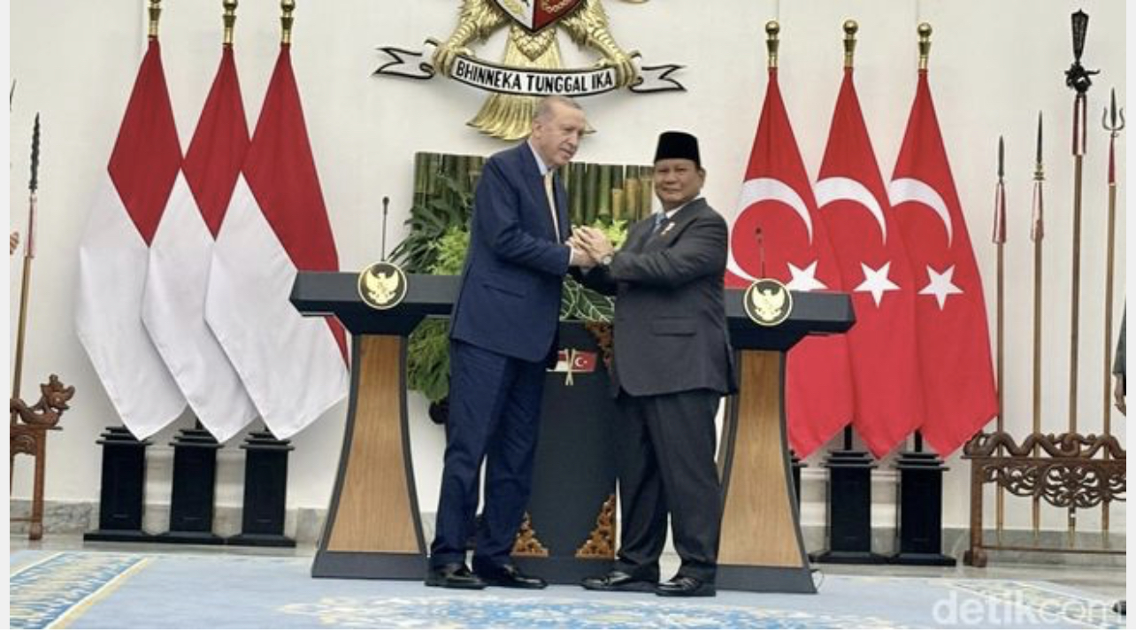Suarawan, Bogor – Presiden Turki, Recep Tayyip Erdogan, menyatakan komitmen negaranya untuk membantu Indonesia dalam pembangunan Ibu Kota Nusantara (IKN) di Kalimantan Timur. Komitmen ini disampaikan langsung oleh Erdogan dalam kunjungan kenegaraannya ke Istana Bogor, Jawa Barat, pada Kamis, 12 Februari 2025, di hadapan Presiden Prabowo Subianto.