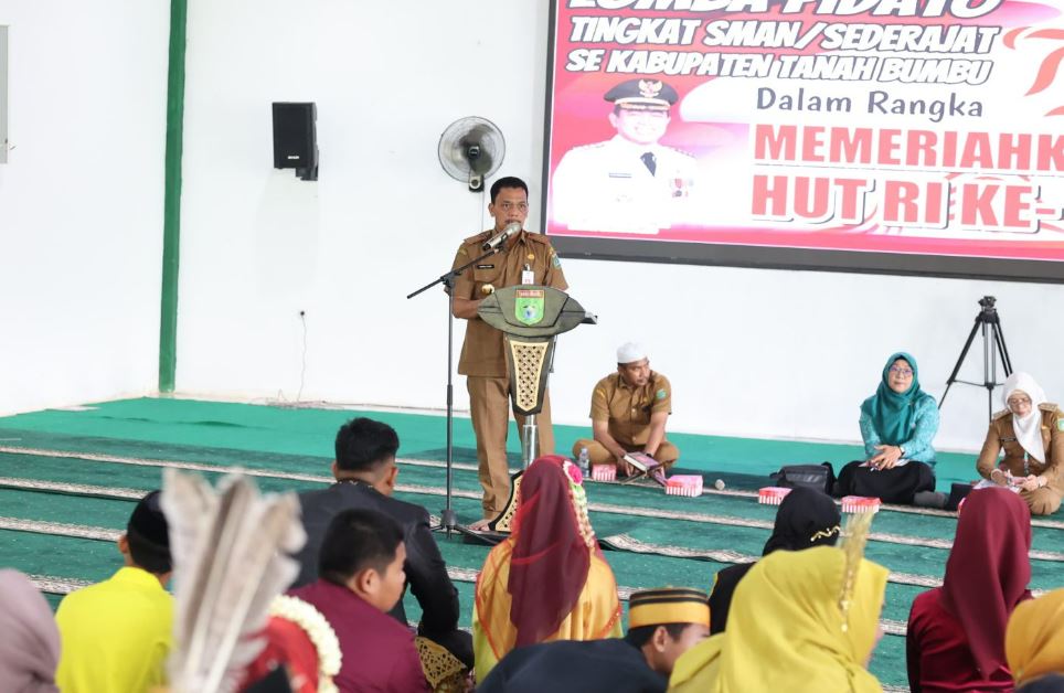 Menyiapkan Generasi Indonesia Emas 2045. Pemerintah Kabupaten Tanah Bumbu (Pemkab Tanbu) menggelar lomba pidato tingkat pelajar SMA/sederajat se-Kabupaten Tanah Bumbu.