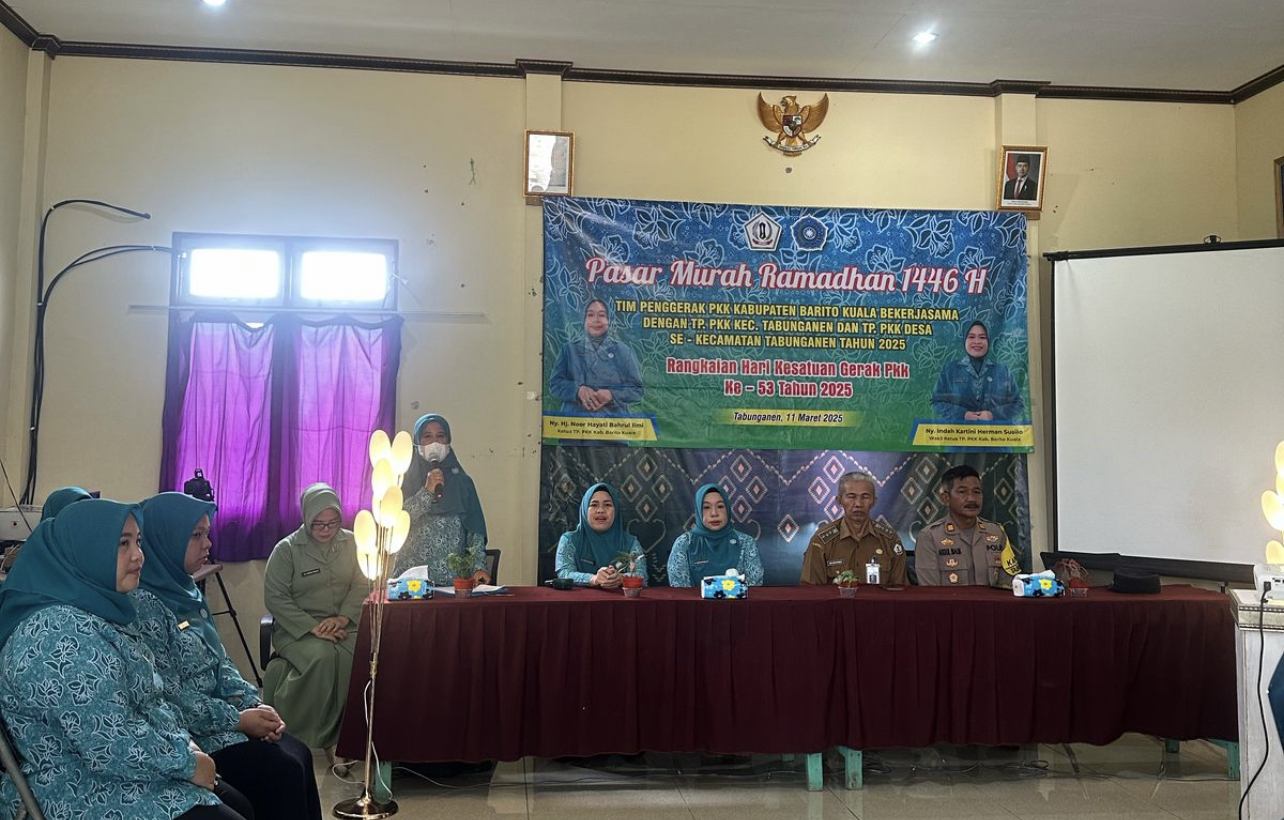 Kegiatan ini merupakan bagian dari peringatan Hari Kesatuan Gerak PKK ke-53 tahun 2025 dan dihadiri langsung oleh Ketua dan Wakil Ketua TP PKK Barito Kuala, perwakilan kecamatan, serta pihak kepolisian. Pada Senin (10/3), Pasar Murah Ramadhan digelar di Kantor Camat Tabunganen, bekerja sama dengan TP PKK Kecamatan dan TP PKK desa se-Kecamatan Tabunganen.